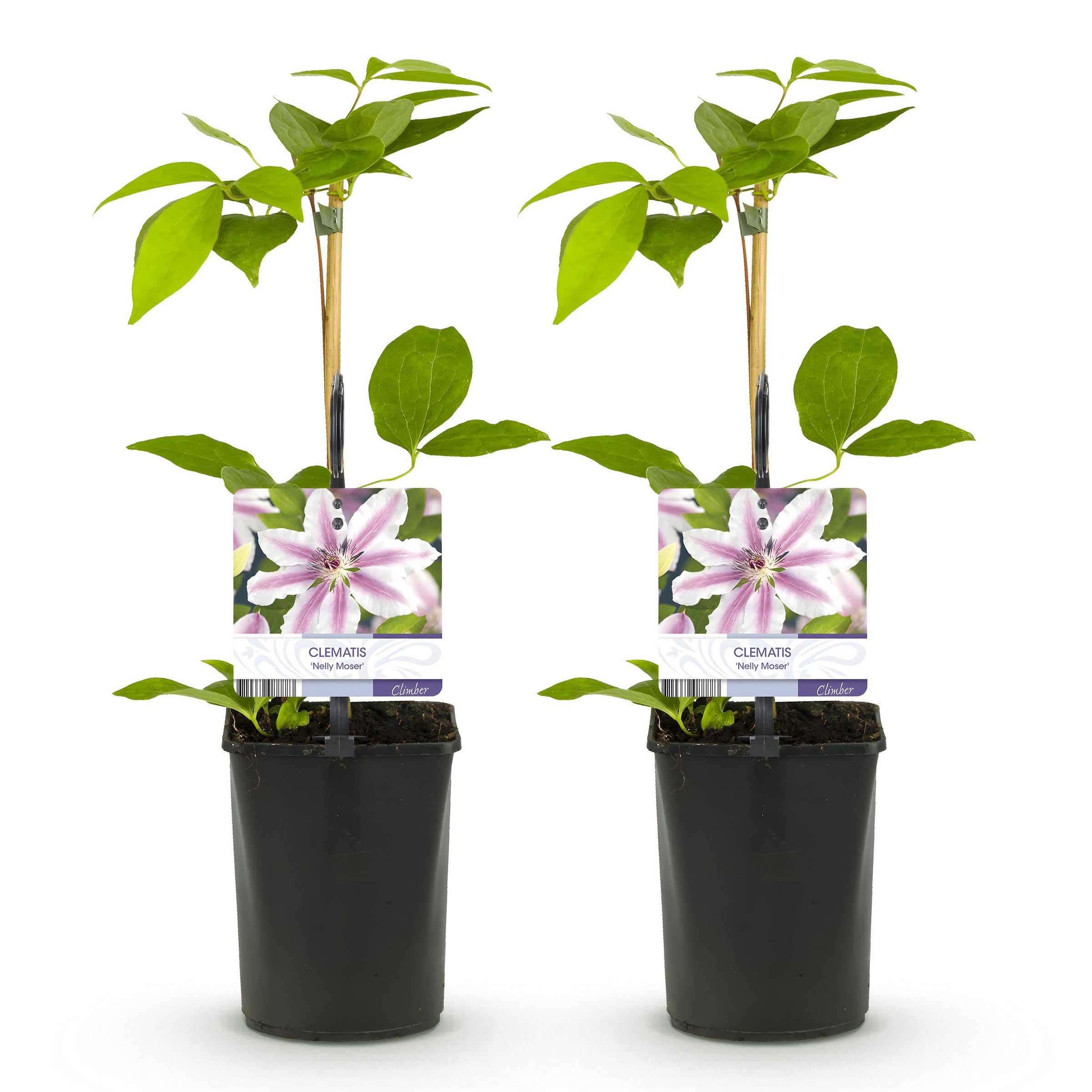 Green boutiQ - Klimplant - Clematis Nelly Moser - Bloem Roze - Weinig onderhoud -2 planten - Pot 11cm Hoogte 40cm