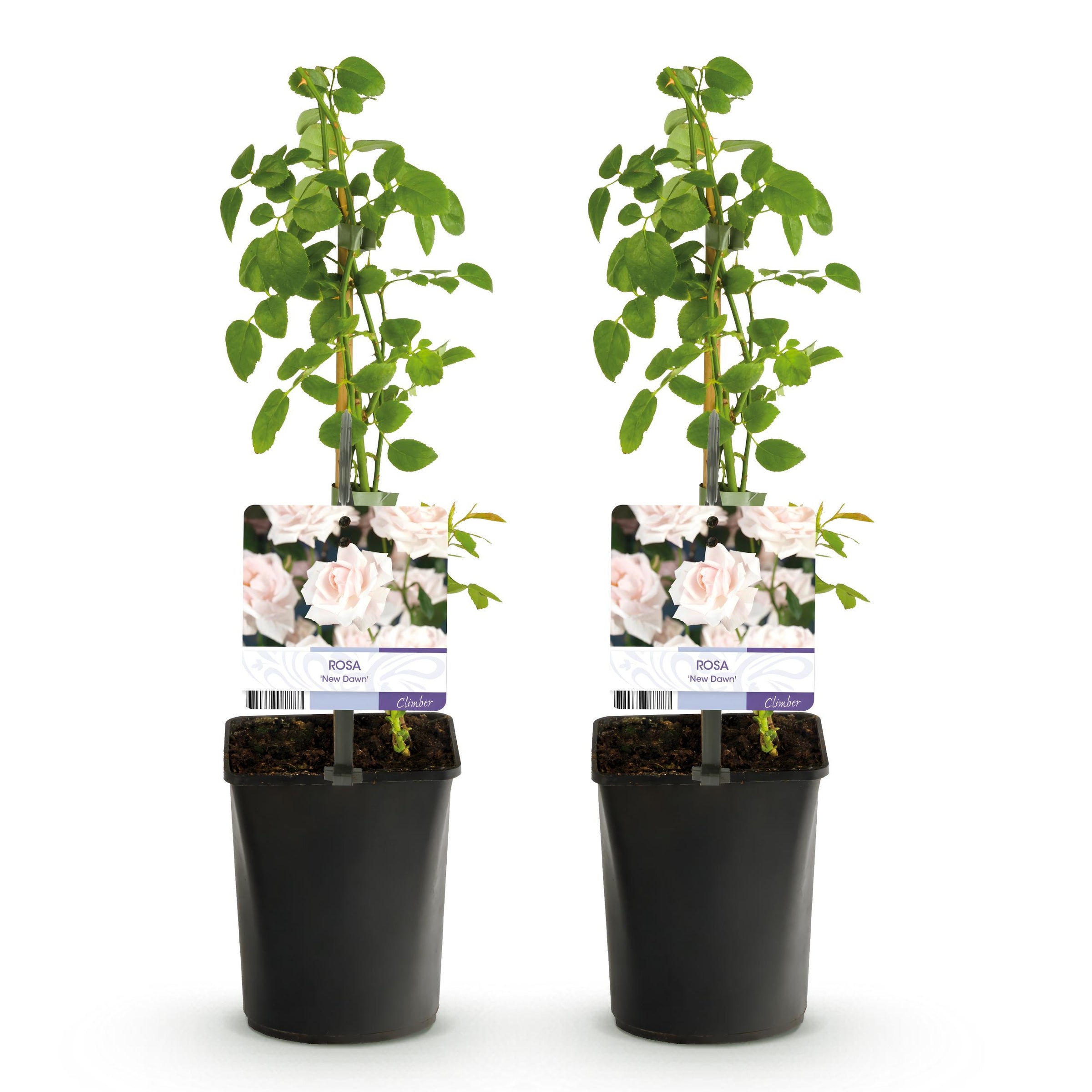 Green boutiQ - Klimroos - Rosa New Dawn - Bloem Licht roze - Weinig onderhoud - 2 planten - Pot 11cm Hoogte 40cm