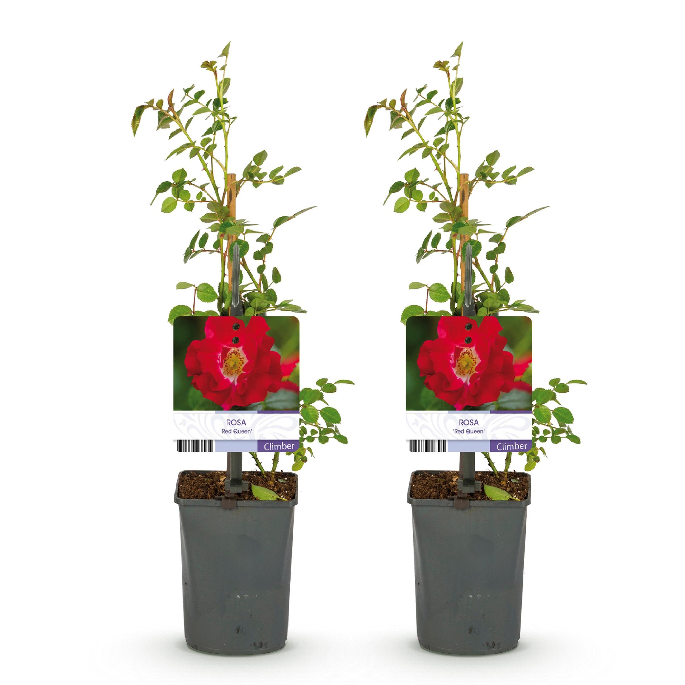 Green boutiQ - Klimroos - Rosa Red Queen - Bloem Rood - Weinig onderhoud - 2 planten - Pot 11cm Hoogte 40cm