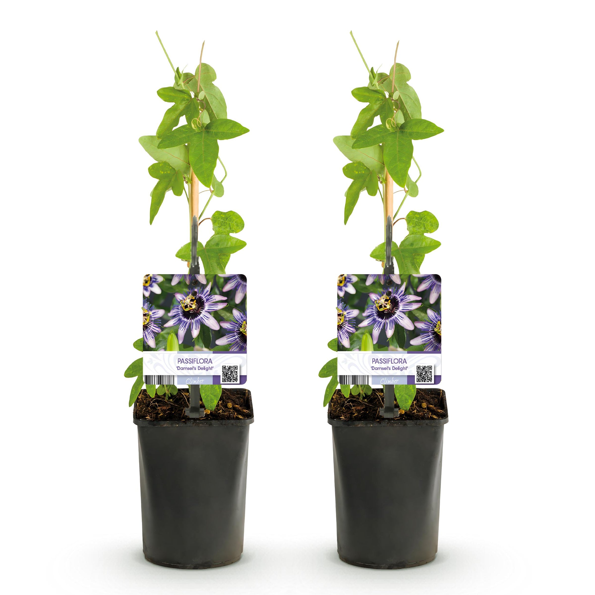Green boutiQ - Passiebloem - Passiflora Damsels Delight - Bloem Paars met Wit - Weinig onderhoud - 2 planten - Pot 11cm Hoogte 40cm