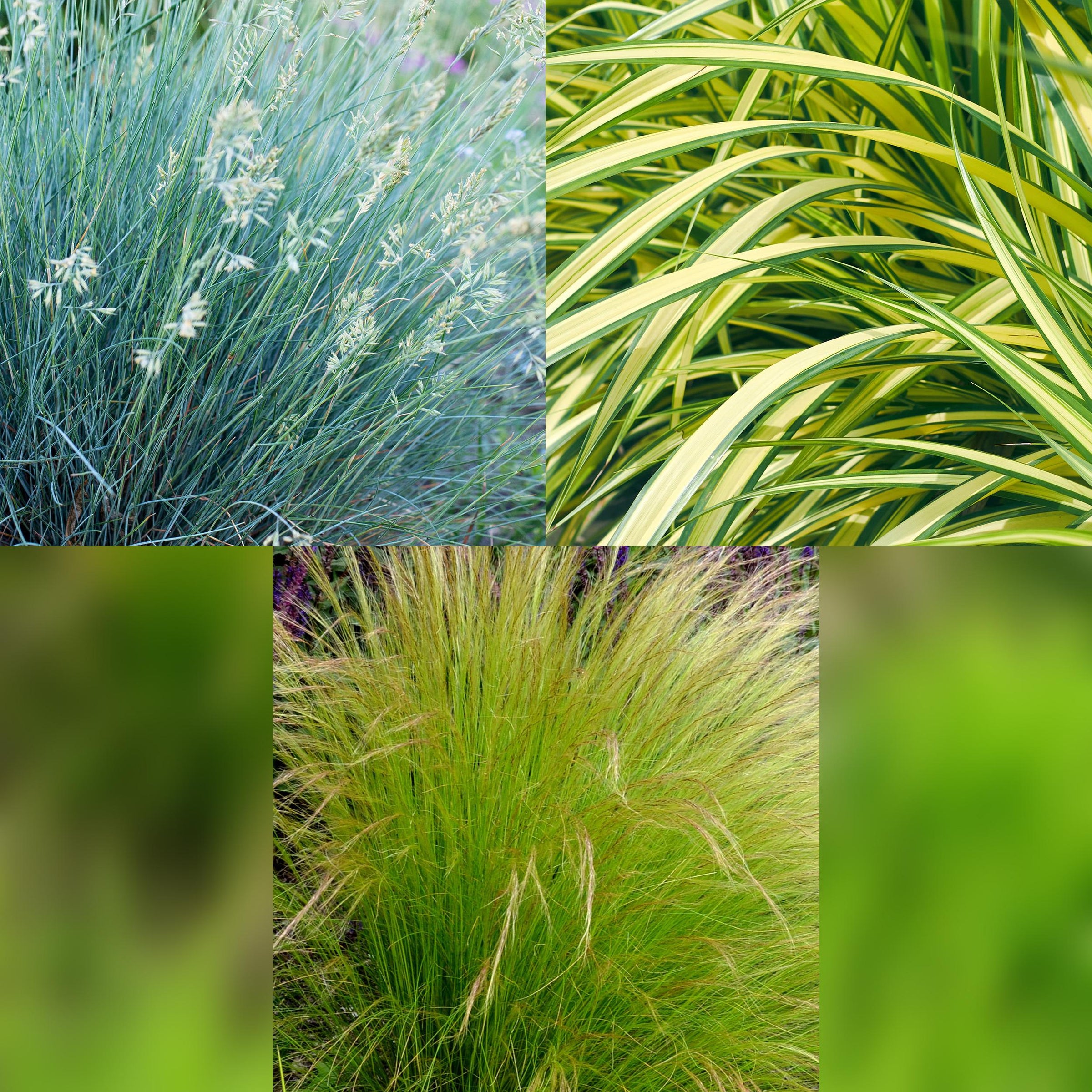 Green boutiQ - Siergrassen - 3 Planten - Blauw - Geel - Groen - Groenblijvend - Winterhard - Pot 17cm Hoogte 50cm