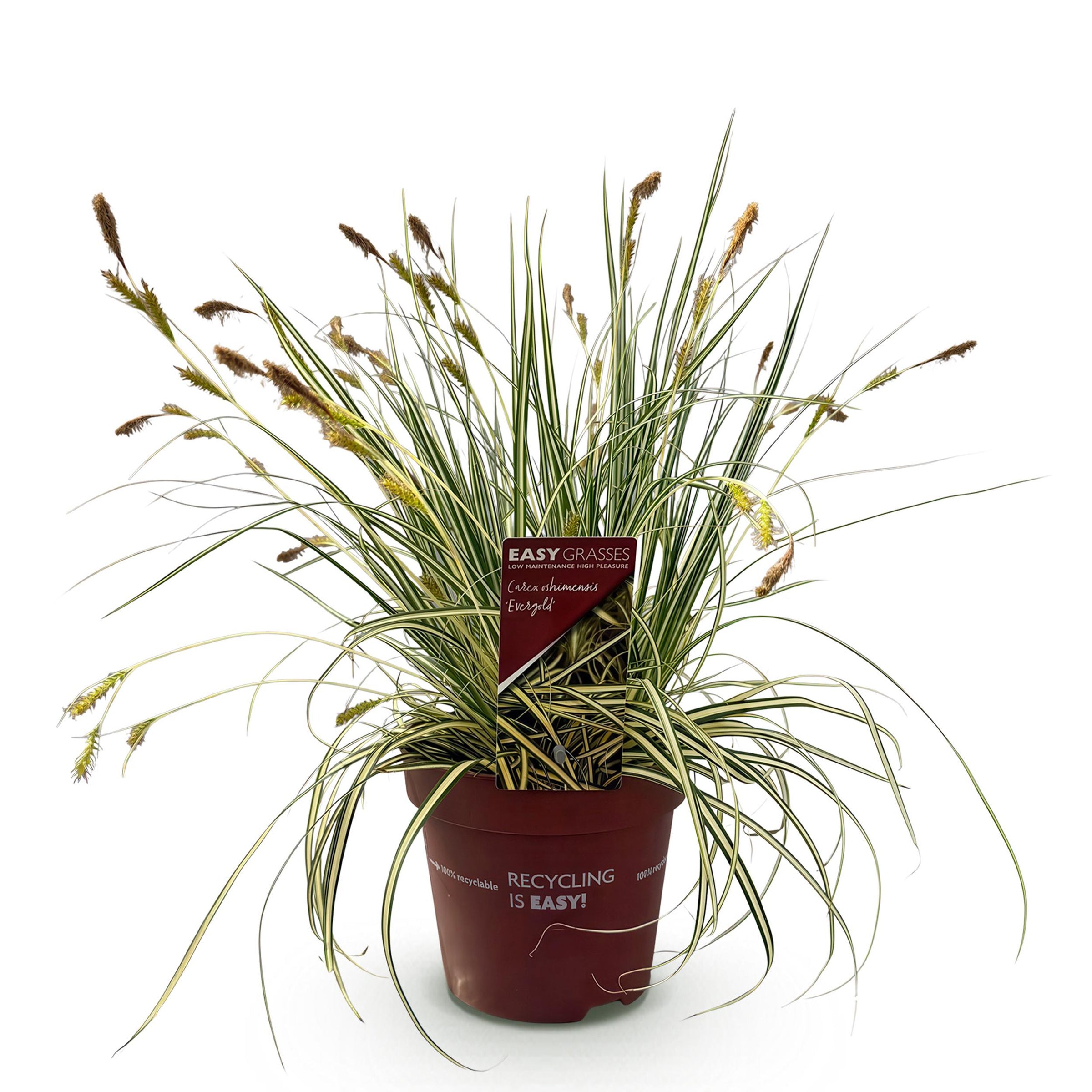 Carex oshimensis Evergold is een prachtige grasplant die een vleugje elegantie aan elke tuin of binnenruimte toevoegt. Deze plant staat bekend om zijn opvallende, gouden bladeren die een schitterend contrast bieden met andere planten.