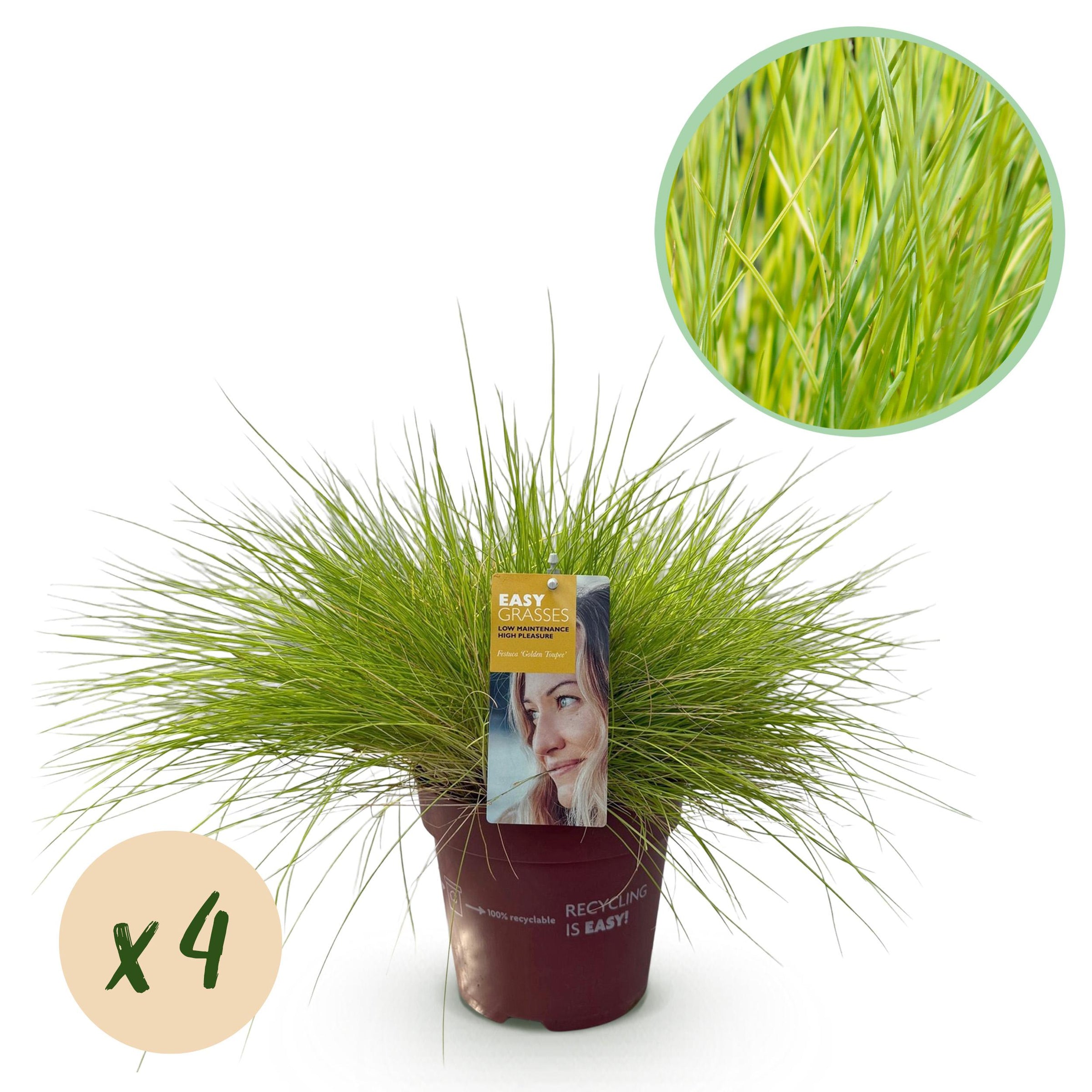 Green boutiQ - Siergrassen - Festuca glauca Golden Toupee - Geel - 4 Planten - Bladhoudend - Weinig Onderhoud - Pot 17cm Hoogte 50cm