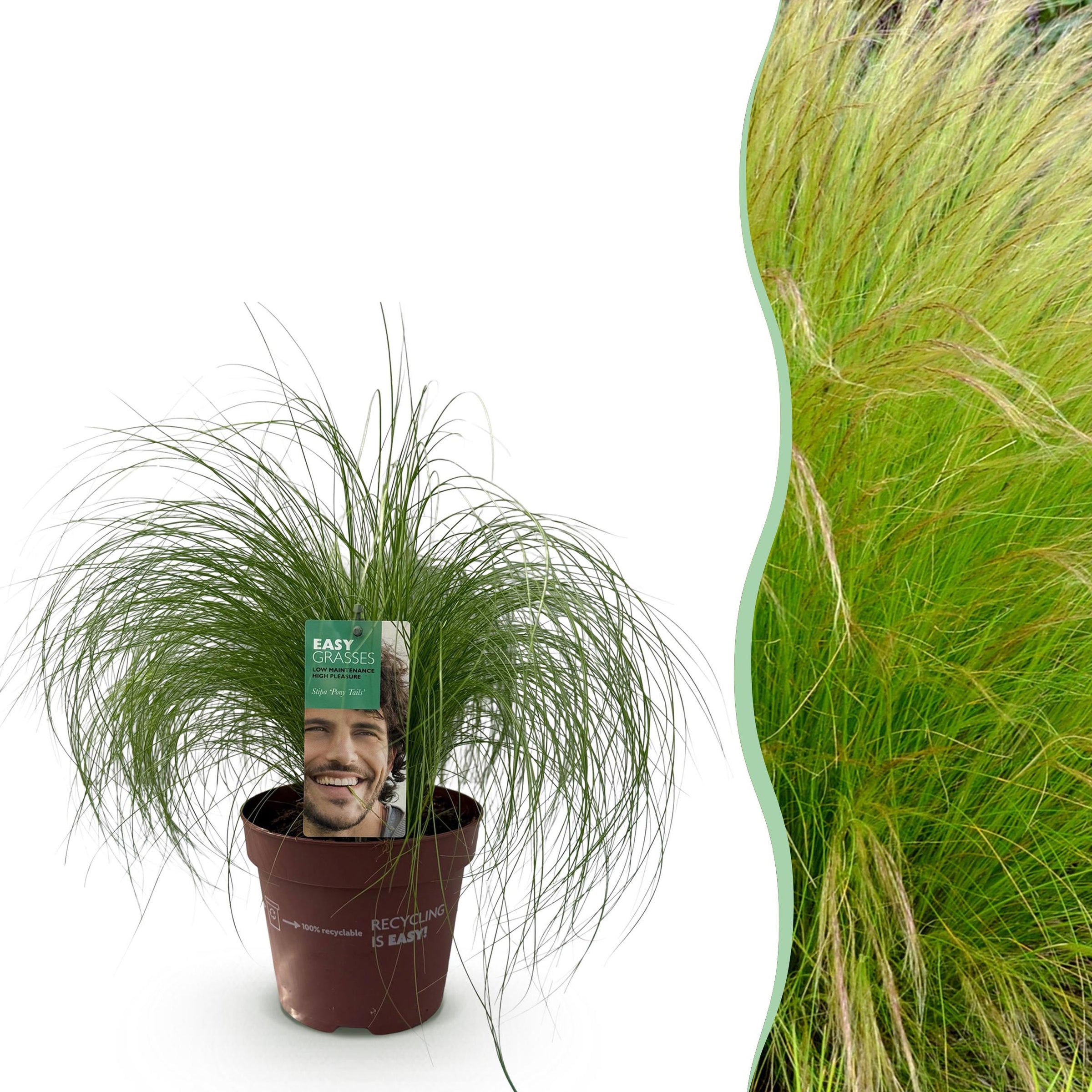 Green boutiQ - Siergrassen - Stipa tenuifolia Pony Tails - Groen - 1 Plant - Groenblijvend - Winterhard - Pot 17cm Hoogte 50cm